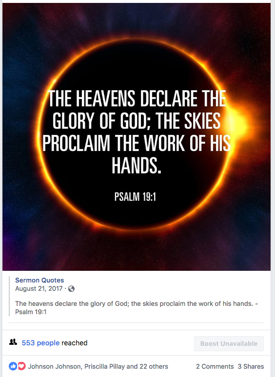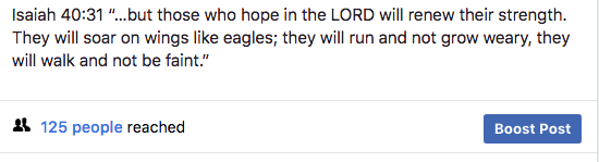 2. In the evening we will post a text status update that includes a Bible verse or quote from a Christian leader similar to this: